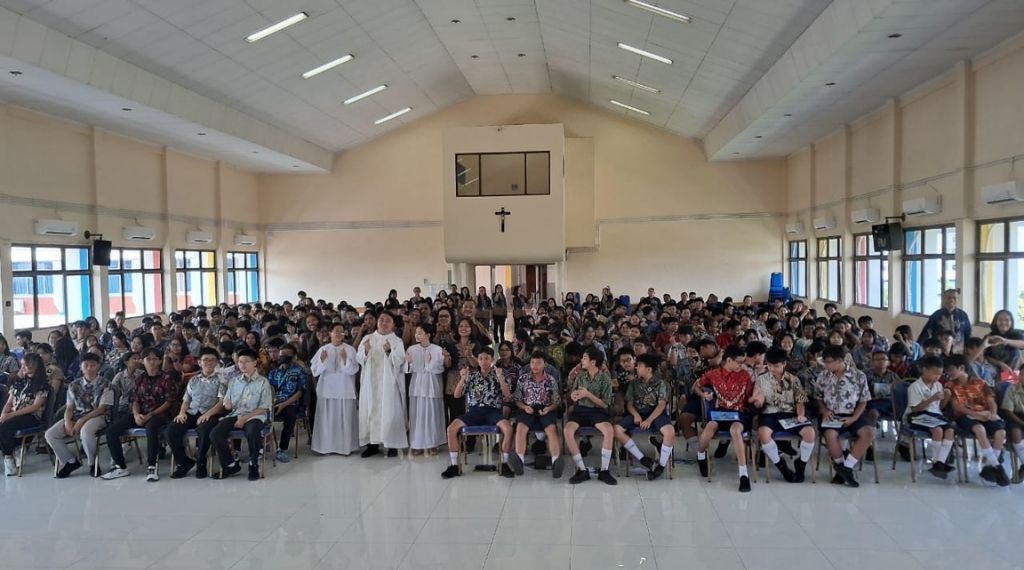 Misa dimulai pukul 12.30 WIB dan dihadiri oleh seluruh siswa jenjang SMP dan SMA, guru, staf, serta karyawan. Mereka hadir mengenakan seragam batik dan menunjukkan sikap penuh hormat. Lagu-lagu pujian dinyanyikan dengan penuh semangat, menciptakan suasana yang tenang dan menyentuh hati. Perayaan Ekaristi dipimpin oleh Pastor Yoseph Mikael Buddha Adrian, Pr.