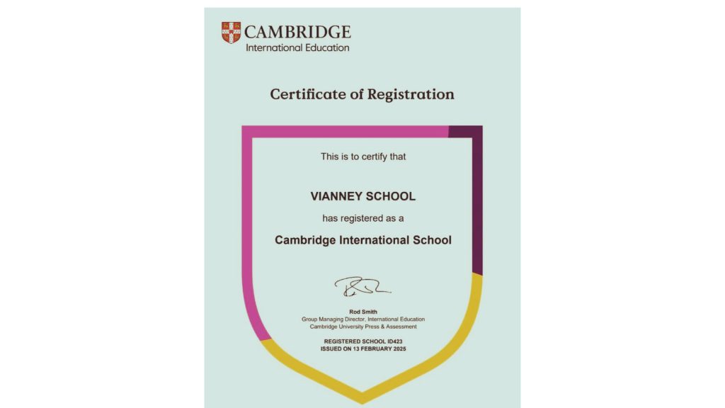 Jakarta-Vianney Junior High School received a Cambridge certificate from the British Council on Monday, September 22, 2025. The certificate was received directly by Drs. Hermanus Eddy Gunawan, Chairman of the Yayasan Bunda Hati Kudus (YBHK). Yayasan Bunda Hati Kudus (YBHK) will continue to collaborate with the British Council in realizing one of YBHK’s core values: Innovation.*